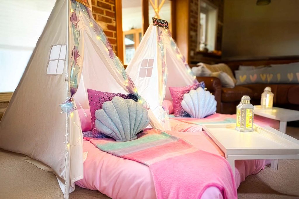 We offer a variety of themed teepee sleepover setups, each designed with love and attention to detail. Every package includes: