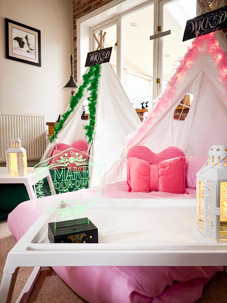 Enchanting teepees with witchy details, dramatic colours and magical Wicked-inspired styling.